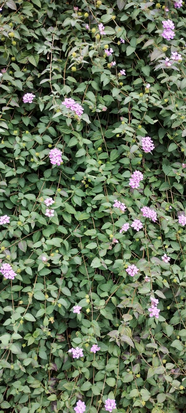 コバノランタナは、漢字で書くと「小葉のランタナ」。その名の通り小ぶりな葉を持ち、茎が長く伸びて垂れ下がる性質があるため、フェンス絡ませたり、グランドカバーとして植えられたりしているのを街中で見かけます。